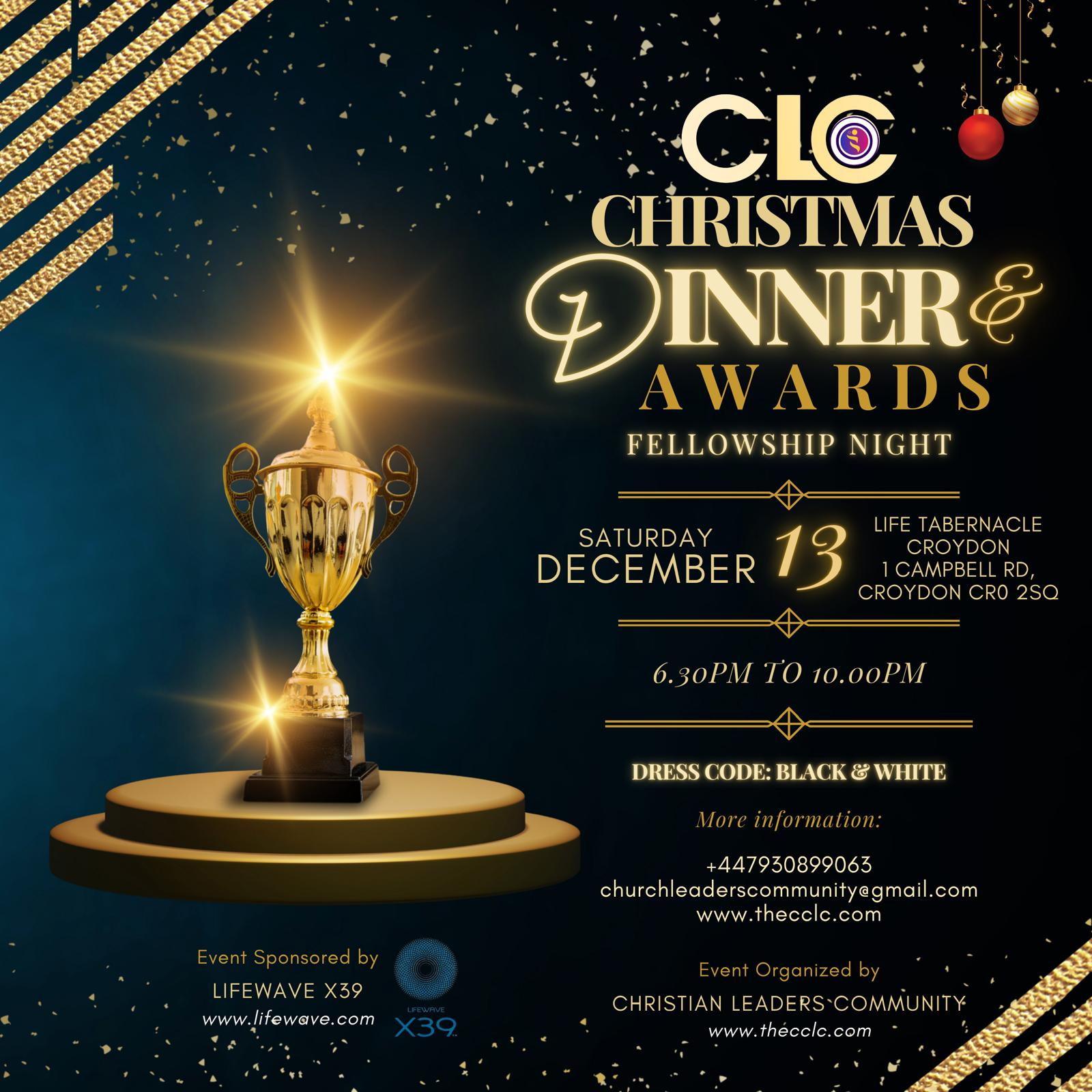 CLC Christmas Dinner & Awards Fellowship Night A beautiful evening of celebration, connection, and thanksgiving as we close the year in faith and fellowship. Enjoy a three-course dinner, inspiring awards,