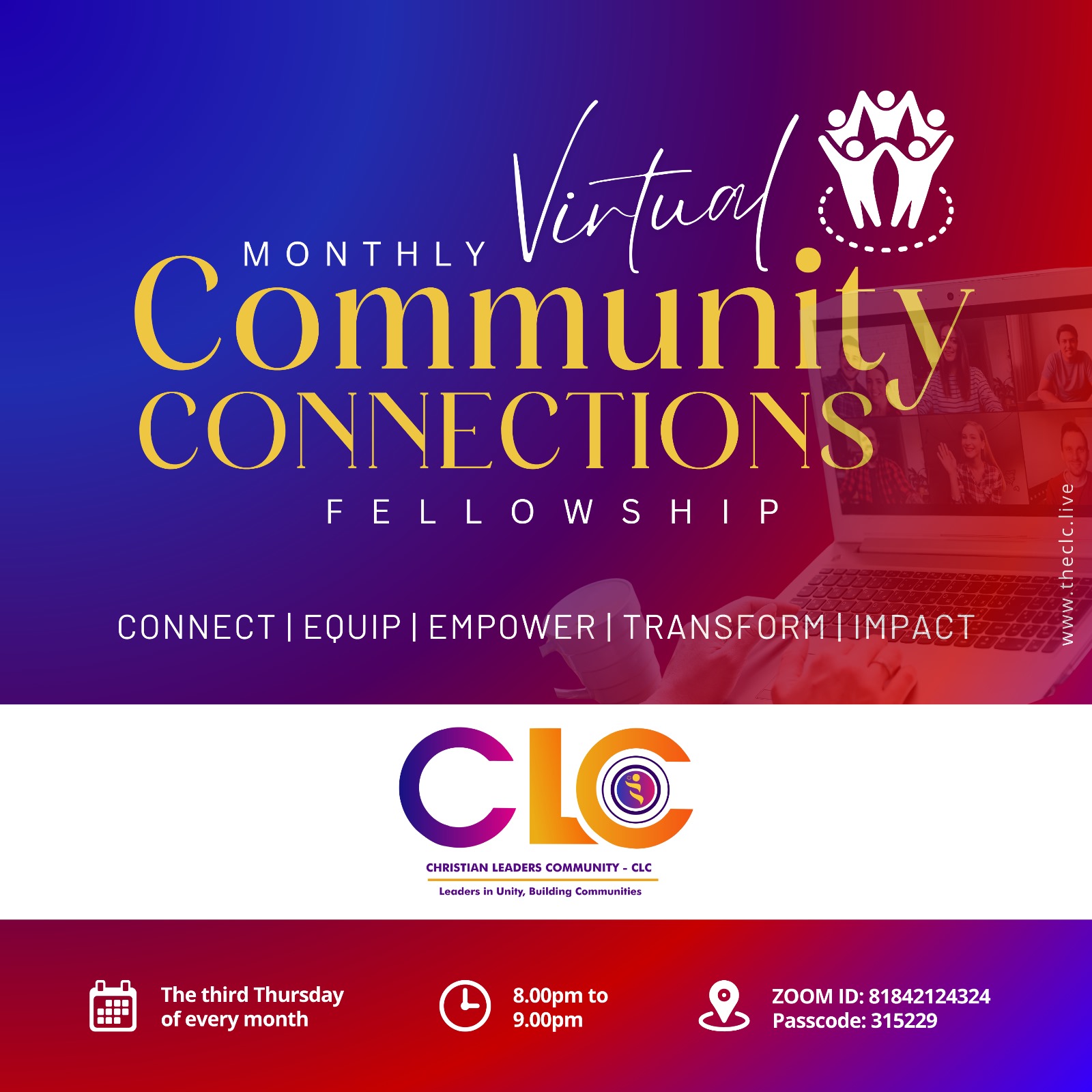 CLC Community Connections Fellowship CONNECT | EQUIP | EMPOWER | TRANSFORM | IMPACT The CLC Community Connections Fellowship is our monthly online gathering where Christian leaders, professionals, and community builders